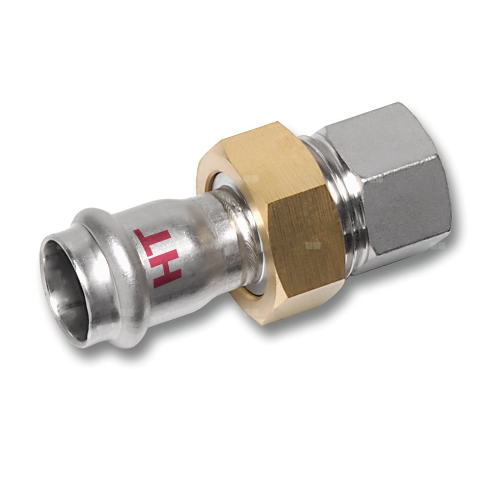 Śrubunek SANHA NiroSan Press Industry z uszczelką i nakrętką z mosiądzu trzyczęściowy, stal nierdzewna, 22 mm x 1'' (zw x GW)