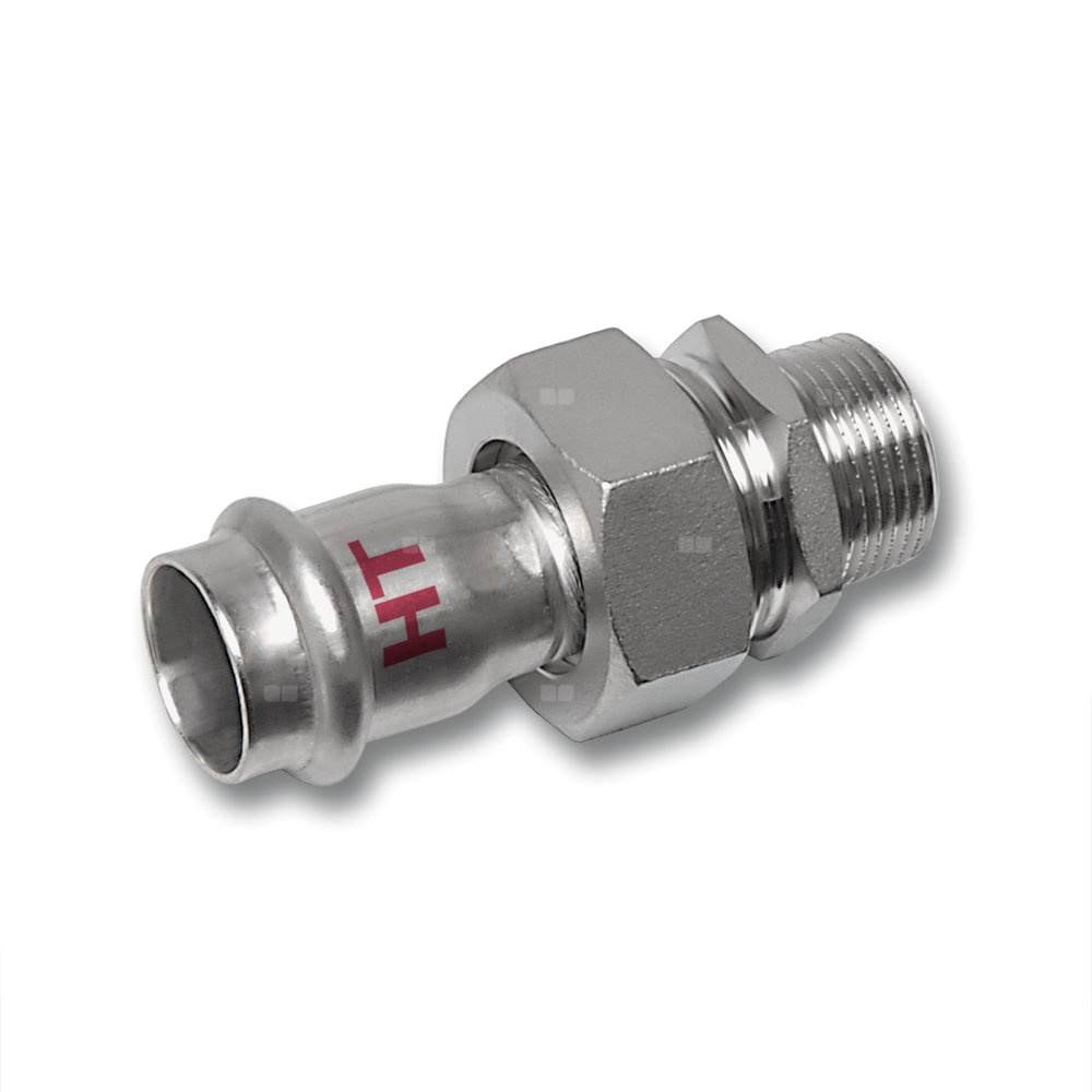 Śrubunek SANHA NiroSan Press Industry z uszczelką trzyczęściowy, stal nierdzewna, 35 mm x 1 1/4'' (zw x GZ)