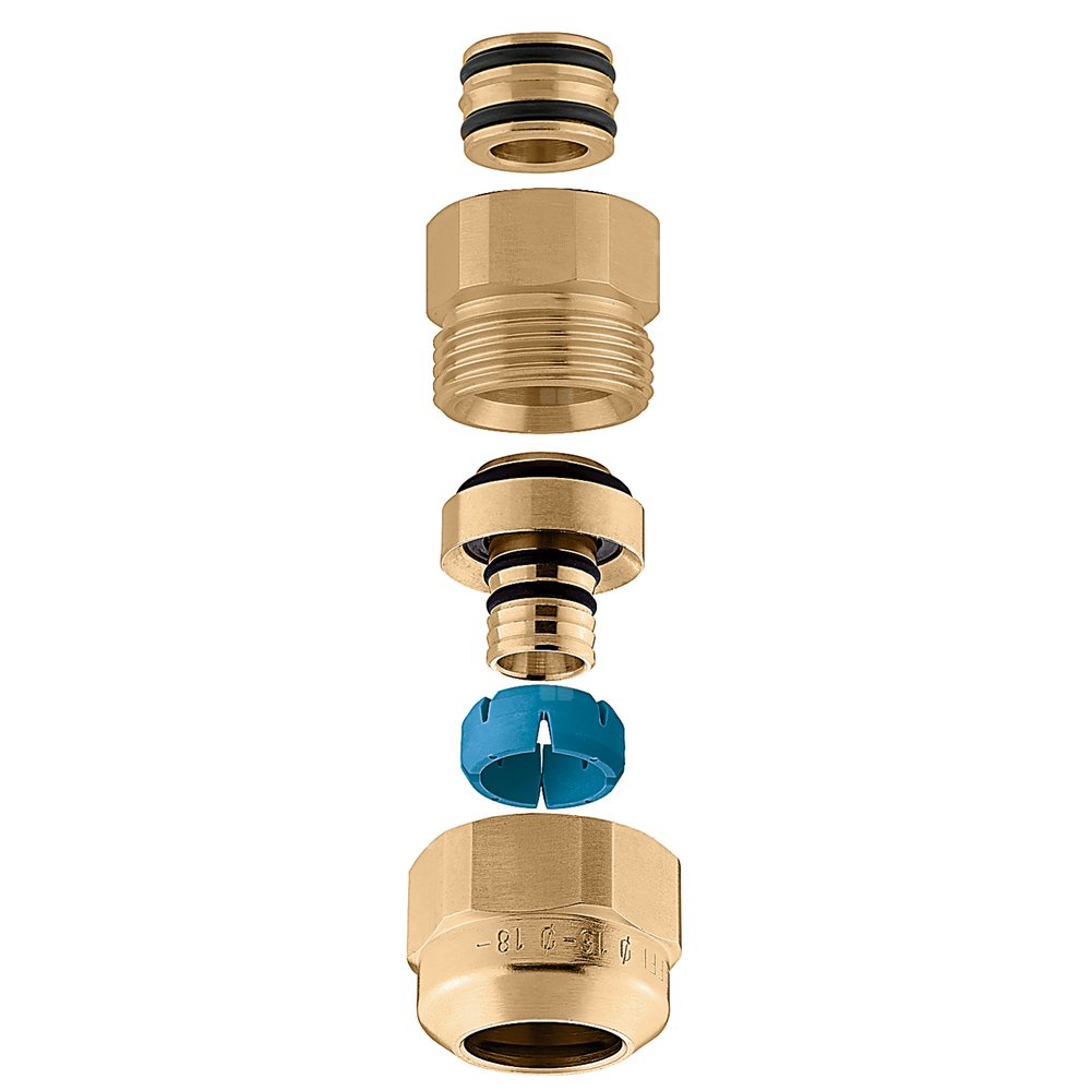 Złączka zaciskowa z samodopasowujacą średnicą do jednowarstwowych i wielowarstwowych rur z tworzywa sztucznego Zakres temperatury pracy: 5÷80°C (PE-X), 5÷75°C (wielowarstwowa 95°C). Przyłącze: 23 p.1,5, Podłączenie do złączek Caleffi. Przyłącze: Øwewnętrzna 15,5–16, Øzewnętrzna 18–20. Maksymalne ciśnienie pracy: 10 bar.