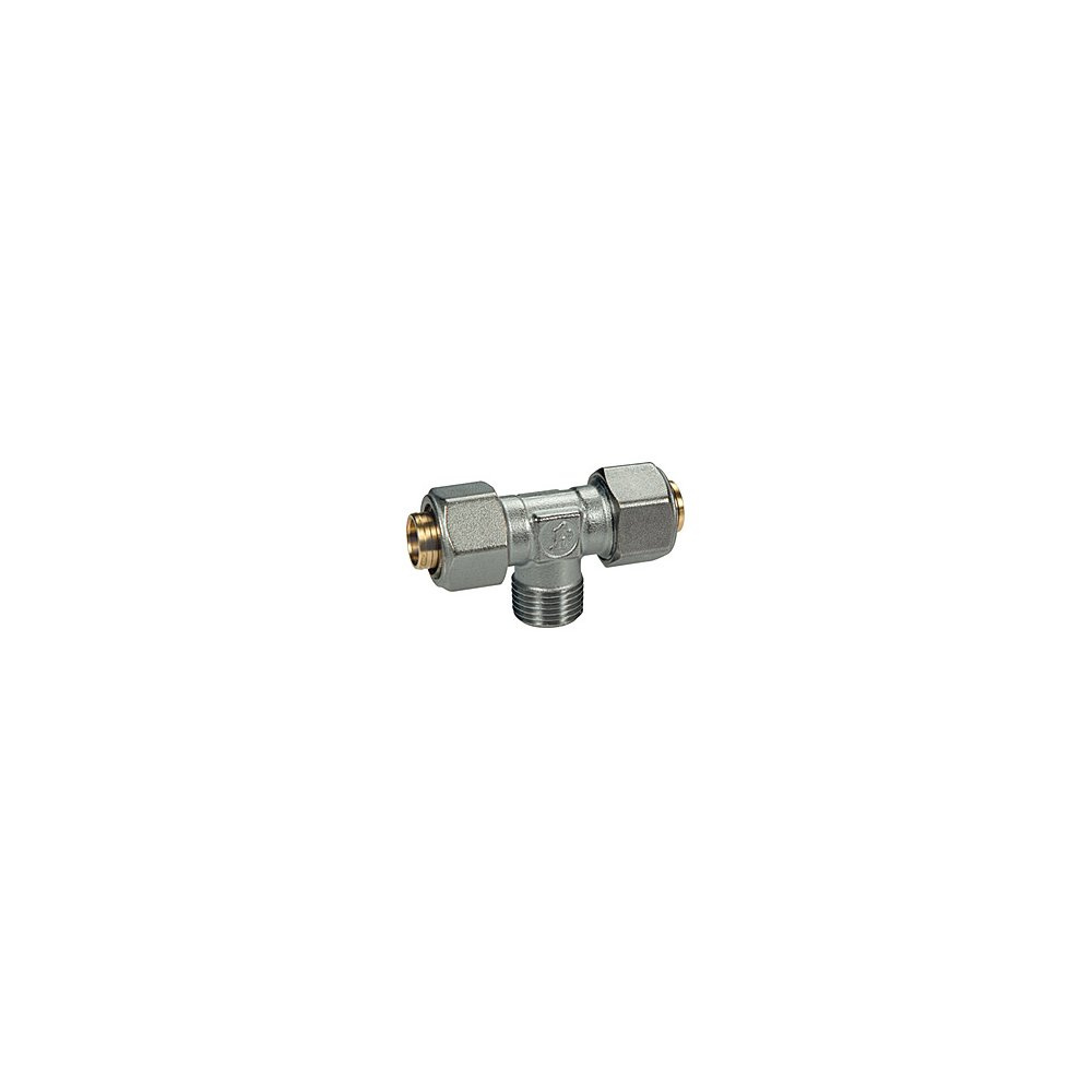 Trójnik GIACOMINI R568AM 90' mosiądz 20x2 x 3/4'' x 20x2 (końcówka wtykowa x GZ x końcówka wtykowa), kolor chrom
