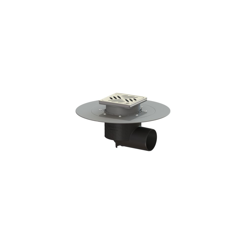 KESSEL Wpust obiektowy Ecoguss kołnier., wielkość nominalna (DN) 80, króciec boczny, odwodnienie przez odpływ punktowy, syfonem w zestawie, maks. wys. posadzki 16 mm, typ pokrywy Kratka design, z regulowaną wysokością