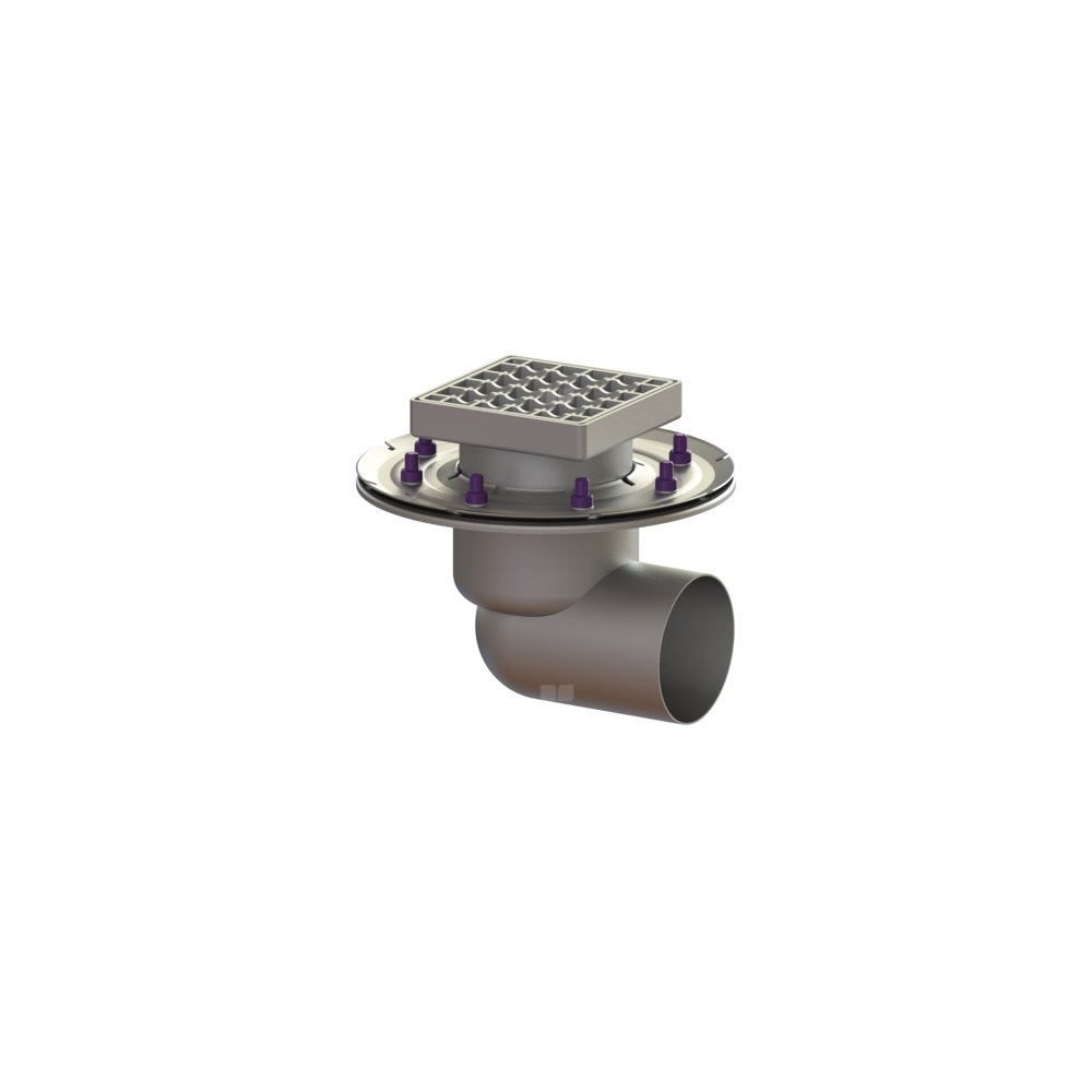 Wpust Ferrofix DN100, odpł.boczny, z nasadką / rusztem kratowym 138x138 ze stali nierdzewnej, sys.125