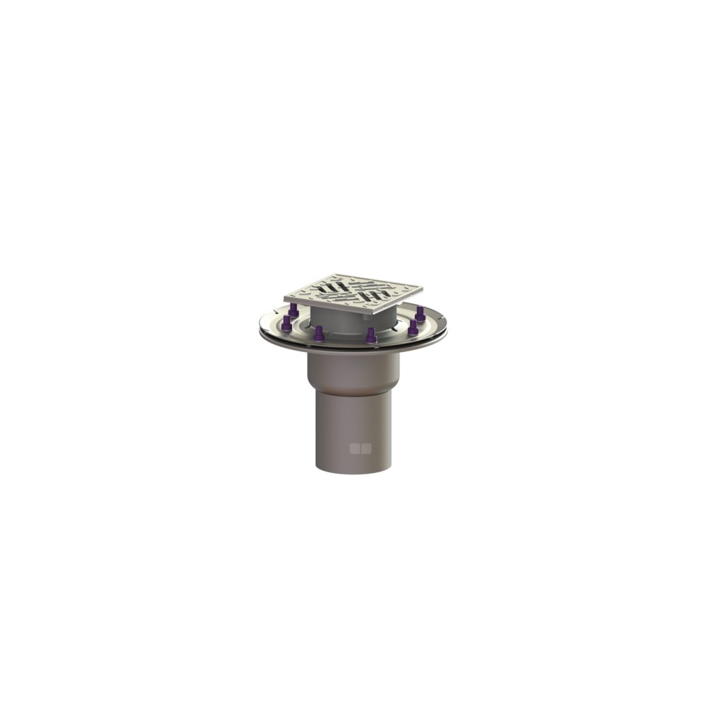 Wpust Ferrofix DN100, odpł.pion., z nasadką ABS i kratką/ramą nierdz. 138x138, przeciwpośl., sys.125
