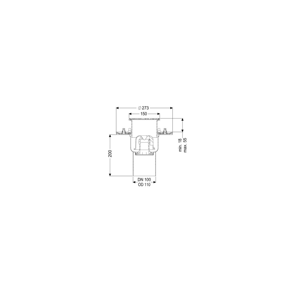 KESSEL W. pod. Ferrofix doc.koł.usz., wielkość nominalna (DN) 100, System 125, króciec pionowy, materiał nasady ABS, z regulowaną wysokością, typ pokrywy Kratka szczelinowa, wymiar zewnętrzny (DZ) 110 mm