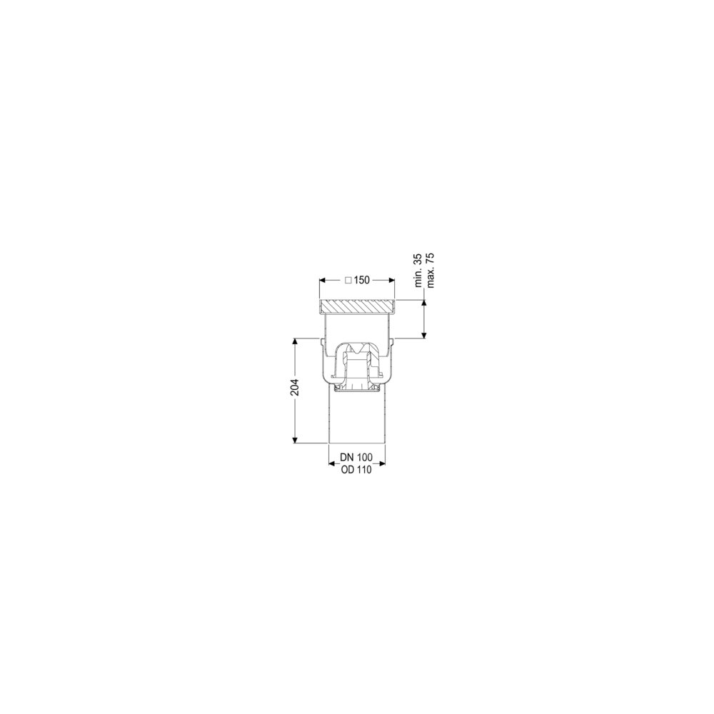 KESSEL Wpust podłogowy/stropowy Ferrofix, System 125, wielkość nominalna (DN) 100, typ pokrywy Ruszt kratowy, dł. pokrywy 138 mm, króciec pionowy, z regulowaną wysokością, wymiar zewnętrzny (DZ) 110 mm, pojemność 22,97 dm³