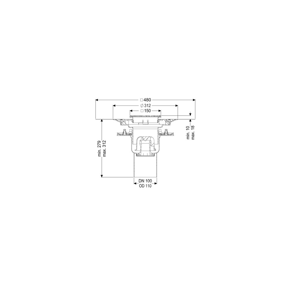KESSEL W. pod. Ferrofix doc.koł.usz., wielkość nominalna (DN) 100, System 125, króciec pionowy, materiał nasady ABS, regulowany w trzech wymiarach, typ pokrywy Kratka szczelinowa, wymiar zewnętrzny (DZ) 110 mm