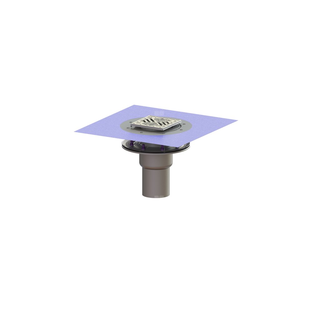 Wpust Ferrofix DN100, odpł.pion, z nasadką Variofix i kratką/ramą nierdz. 138x138, przeciwpośl., sys.125