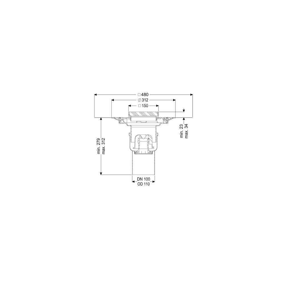 KESSEL Wpust podłogowy/stropowy Ferrofix, System 125, wielkość nominalna (DN) 100, typ pokrywy Ruszt kratowy, dł. pokrywy 138 mm, króciec pionowy, regulowany w trzech wymiarach, wymiar zewnętrzny (DZ) 110 mm, pojemność 66,7 dm³