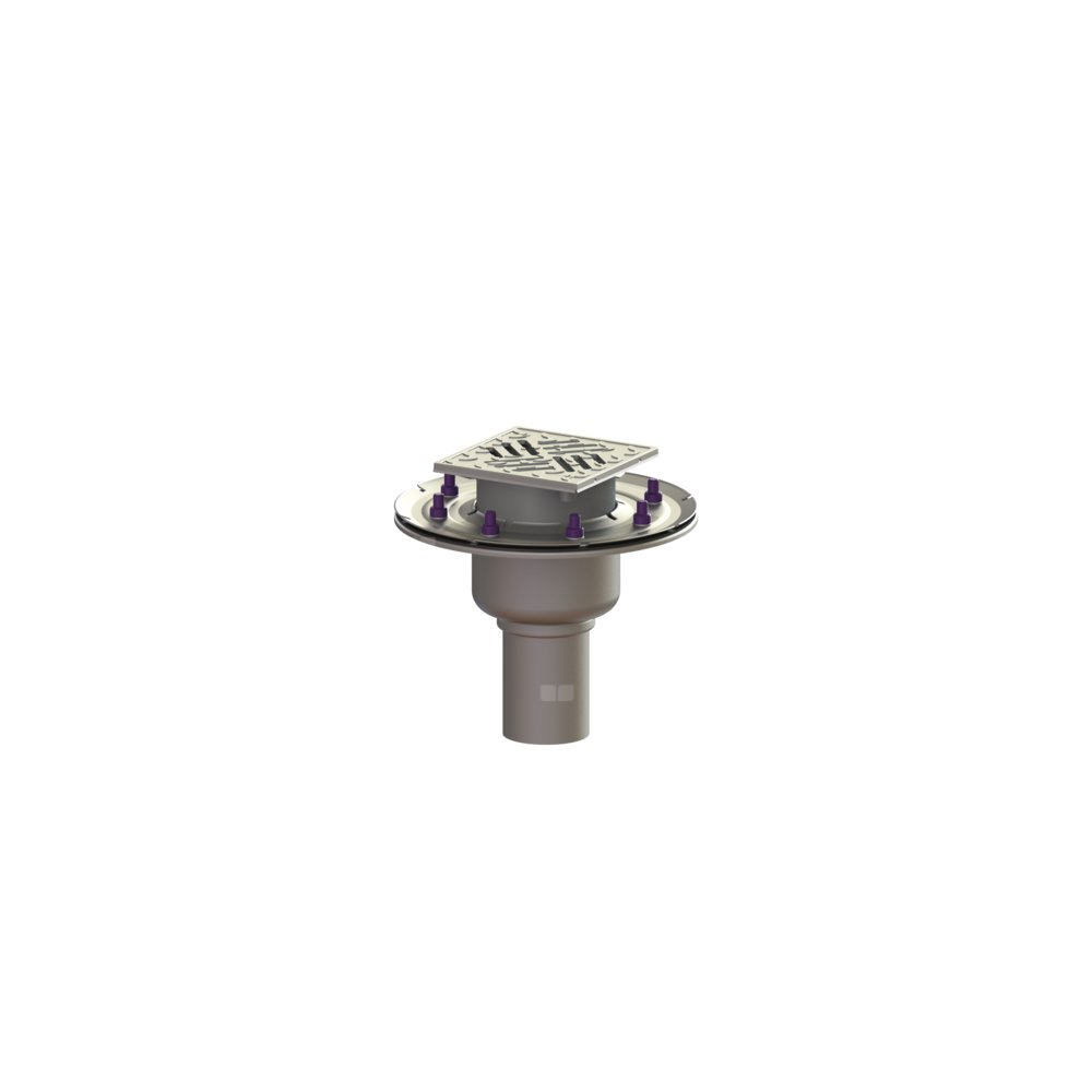 Wpust podłogowy/stropowy Ferrofix ze stali nierdzewnej służy do odwodnienia punktowego i jest wyposażony w dociskowy kołnierz uszczelniający oraz wyjmowany syfon ze stali nierdzewnej, uszczelkę wargową i pokrywę ochronną na czas fazy budowlanej. Dociskowy kołnierz uszczelniający z trzpieniami i śrubami ze stali nierdzewnej służy do dociskania lub zgrzewania taśm bitumicznych i polimerowo-bitumicznych oraz taśm uszczelniających z tworzywa sztucznego i elastomerów. Do uszczelnień zabezpieczających przed wodą wolno użyć wyłącznie sprawdzonych przez producenta taśm uszczelniających. Króciec odpływowy jest przystosowany do podłączenia do rur SML. Z możliwością przyłączenia do systemu wyrównania potencjałów.