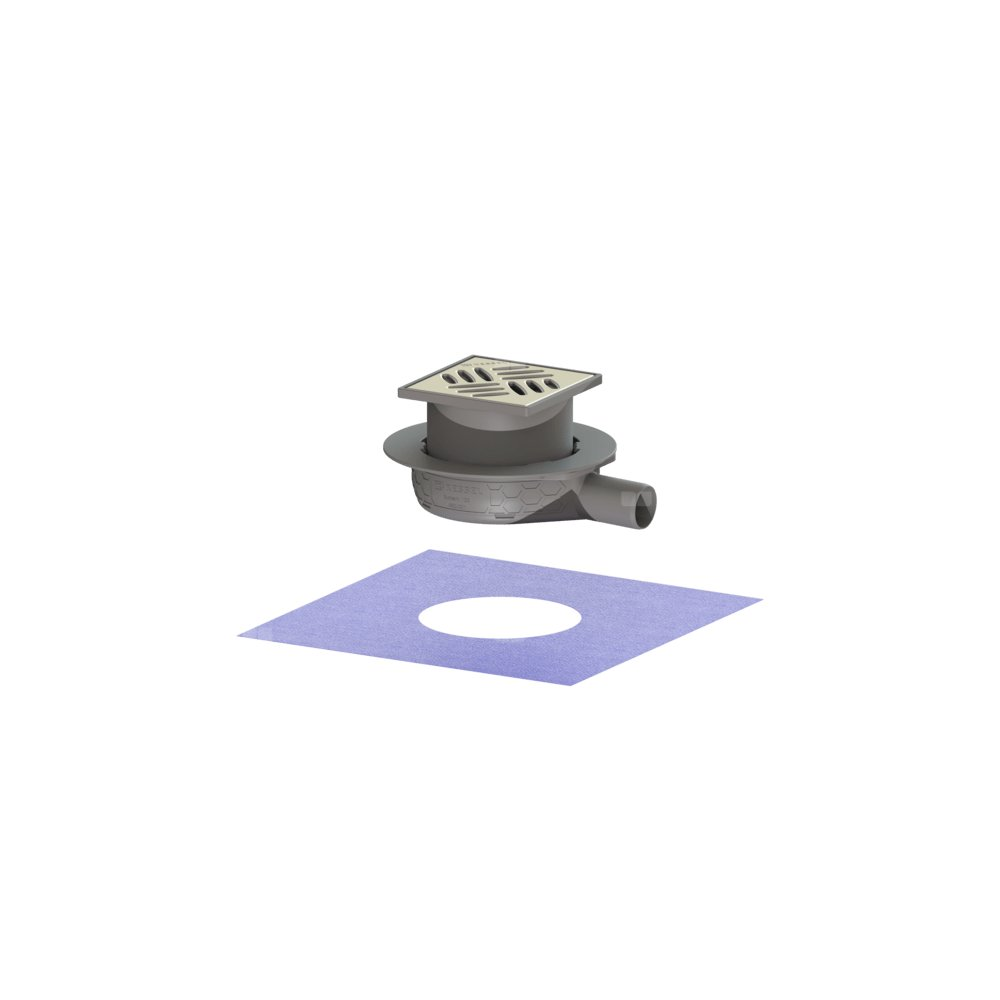 Wpust KESSEL Ultraflat 54 z 1 przyłączem DN 40, odpływ poziomy (zdejmowany), kratka 120x120mm stal nierdzewna