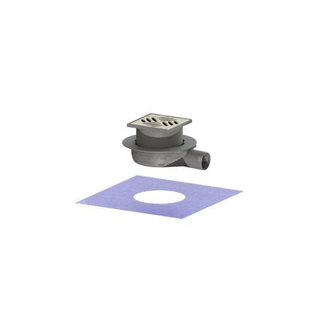 Wpust KESSEL Ultraflat 54 z 1 przyłączem DN 50, odpływ poziomy (zdejmowany), kratka 120x120mm stal nierdzewna