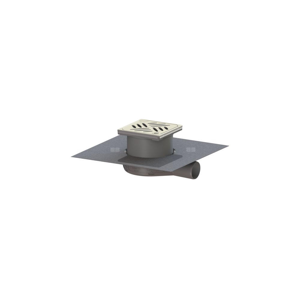 Wpust KESSEL Ultraflat 54 z 1 przyłączem DN 50, odpływ poziomy (zdejmowany), kratka 120x120mm stal nierdzewna