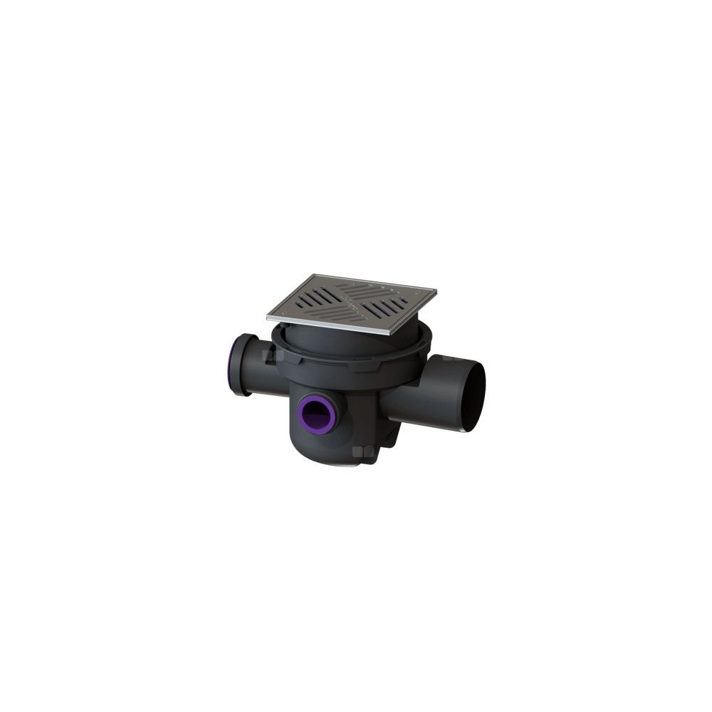 KESSEL Korpus Universale, zabudowa w płycie podłogowej, króciec boczny, typ pokrywy Kratka szczelinowa, srebrny, pokrywa Stal nierdzewna 14301, WU Wstępnie zmontowane w fabryce, ochrona przeciwzalewowa Typ 5