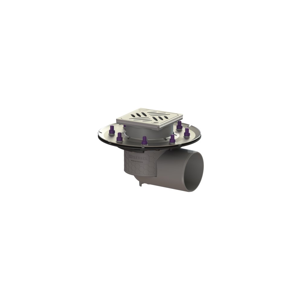 KESSEL Wpust obiek. Practicus doc.koł., dł. pokrywy 120 mm, króciec boczny, wielkość nominalna (DN) 100, syfonem w zestawie, typ pokrywy Kratka design, kratka design Kessel, uszczelnienie nasadzie przez Krawędź przyłączeniowa