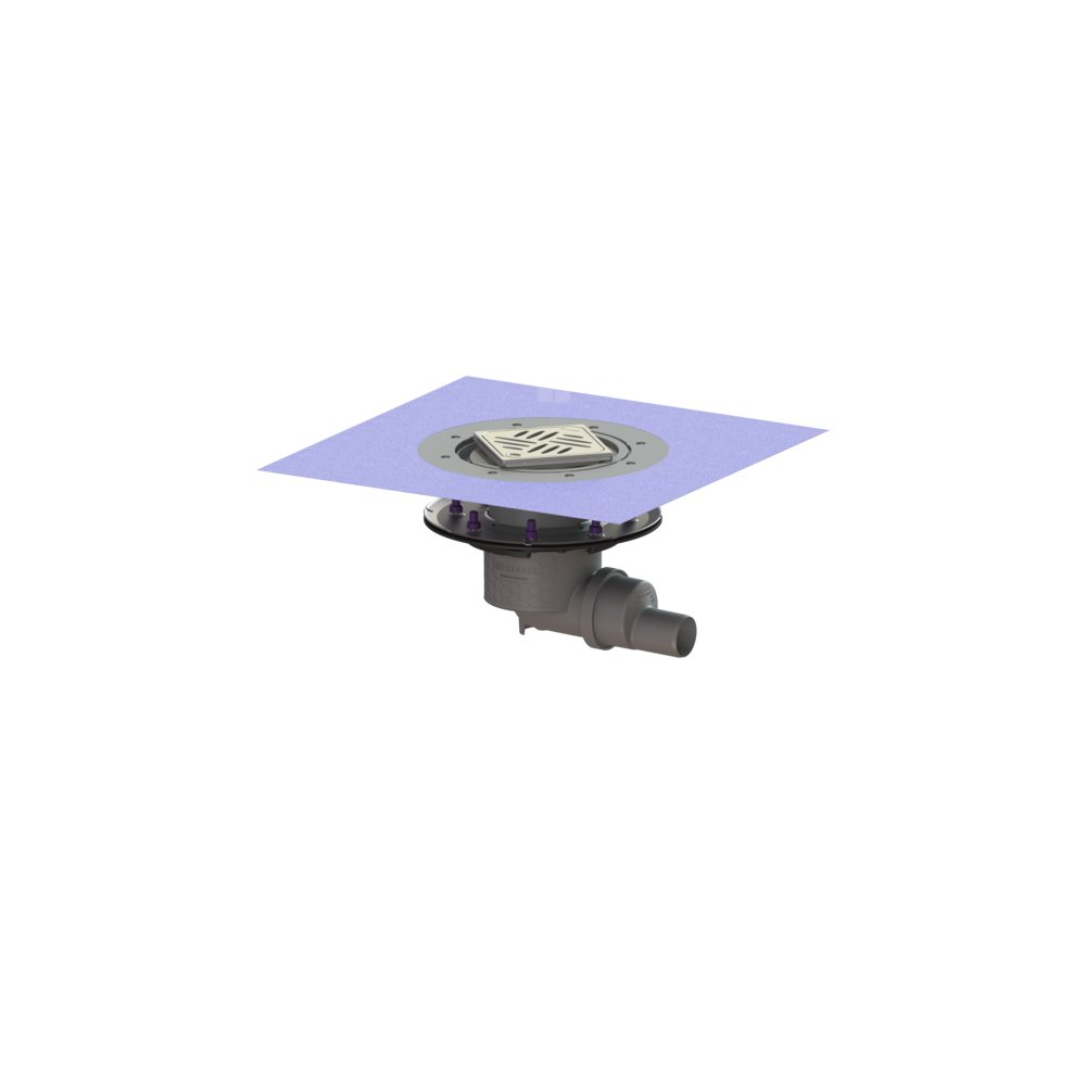 KESSEL Wpust obiek. Practicus doc.koł., dł. pokrywy 120 mm, króciec boczny, wielkość nominalna (DN) 50, syfonem w zestawie, typ pokrywy Kratka design, kratka design Kessel, uszczelnienie nasadzie przez załączona mata uszczelniająca do przyklejenia (zmu) wg DIN 18534
