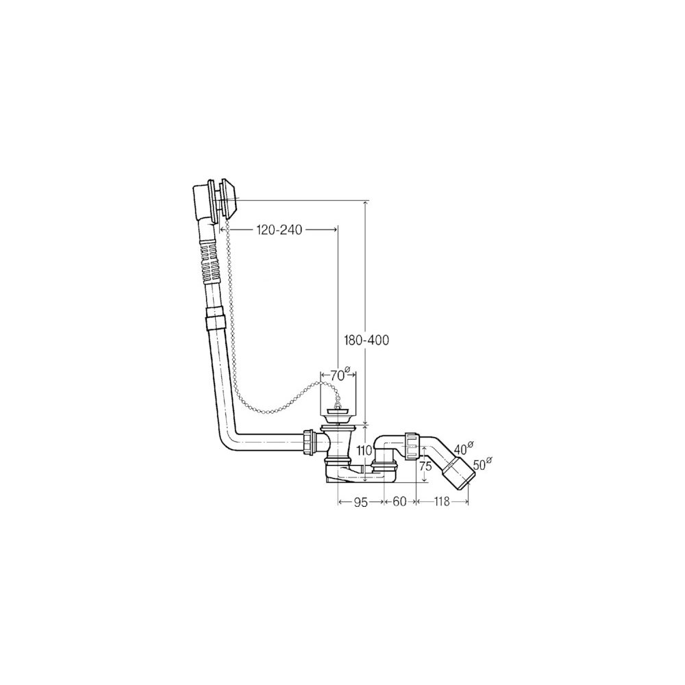 Citaplex-komplet odpływowo-przelewowy nr wzoru 6176.45 DN: 40/50 wanna standardowa łuk odpływowy 45 st. do wanien z otworem odpływowym fi 52