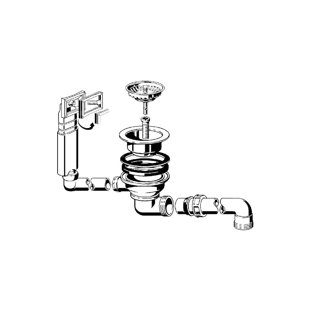 Komplet odpływowo-przelewowy nr wzoru 7139.151 G: 1½ fi: 114,5 do zlewozmywaków z otworem odpływowym fi 90