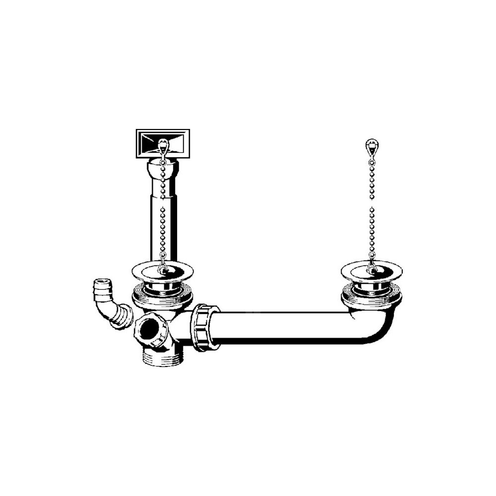 Komplet odpływowo-przelewowy przeznaczenie: zlewozmywak podwójny, tworzywo sztuczne, nr wzoru 7823.52 G: 1½ fi: 70 wysokość zabudowy dolnej części zaworu: 80 rozstaw: 100–270