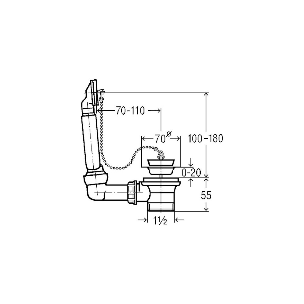 Komplet odpływowo-przelewowy przeznaczenie: zlewozmywak, tworzywo sztuczne, nr wzoru 7462.71 G: 1½ fi: 70 wysokość zabudowy dolnej części zaworu: 55