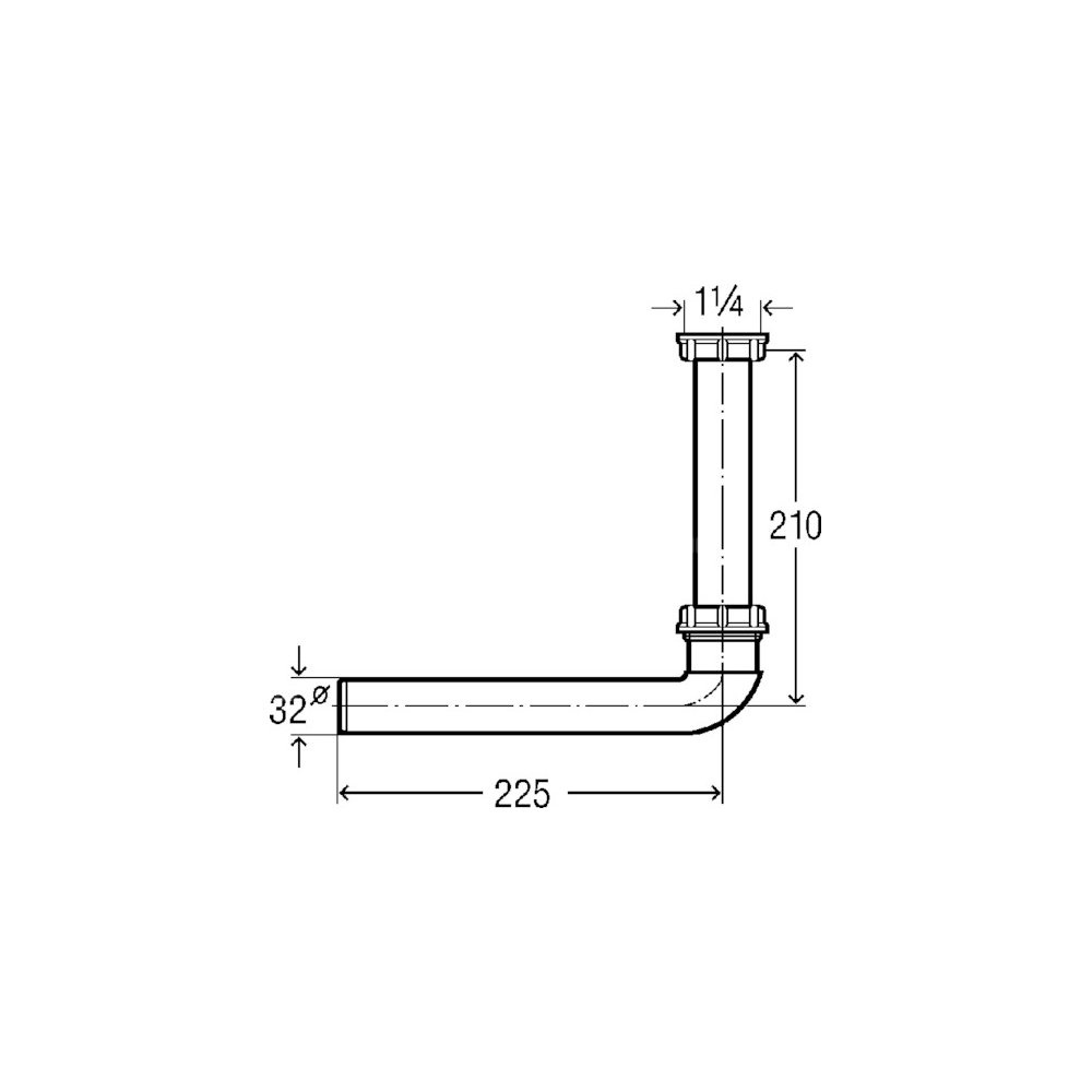 Łuk odpływowy 90 st. tworzywo sztuczne, nr wzoru 5632.2 G: 1¼ DN: 32 L: 225