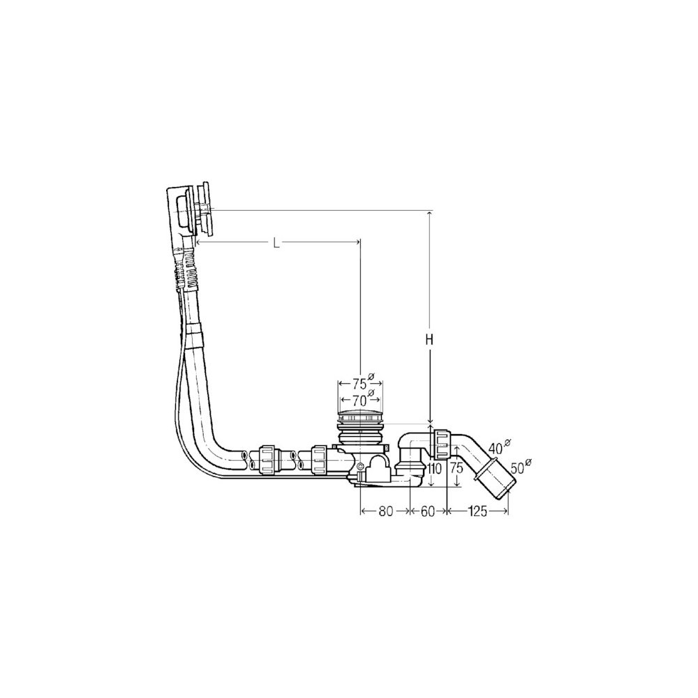 Multiplex Trio F-komplet odpływowo-przelewowy nr wzoru 6145.6 DN: 40/50 długość cięgna Bowdena: 1070 L: 130–680 H: 180–430 wanna o długości niestandardowej