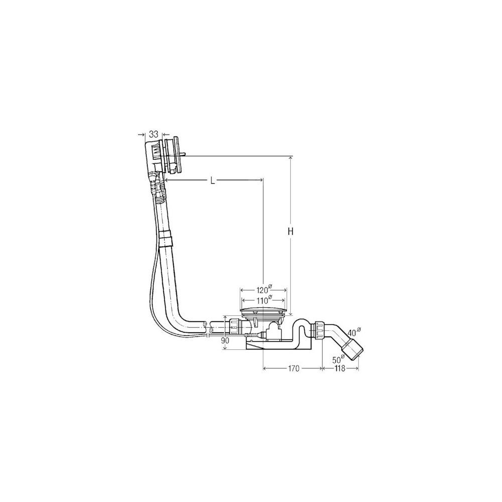 Rotaplex Trio-komplet odpływowo-przelewowy Visign RT3 nr wzoru 6141.61 DN: 40/50 długość cięgna Bowdena: 725 L: 150–400 H: 180–430 wanna z odpływem pośrodku do wanien z otworem odpływowym fi 90