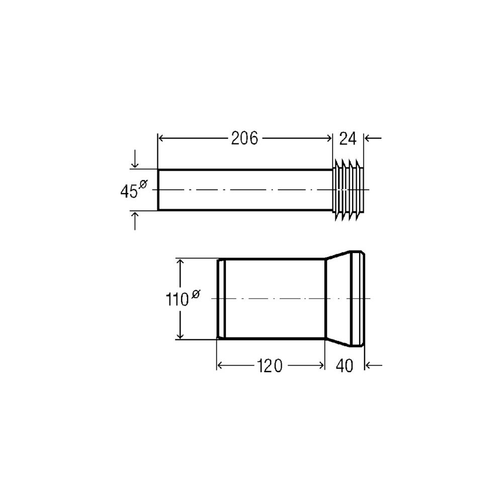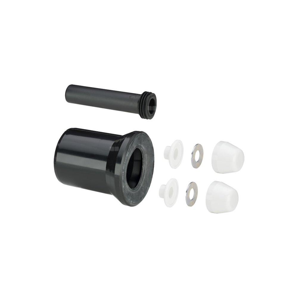 Zestaw przyłączeniowy. Przeznaczenie: tworzywo sztuczne. Wyposażenie: Rura spłuczkowa z uszczelką 45×230 mm, rura przyłączeniowa do WC z uszczelką wargową, zestaw montażowy (elementy maskujące białe), nr wzoru 3817.816, nr kat. 101 824, DN: 100 L: 160