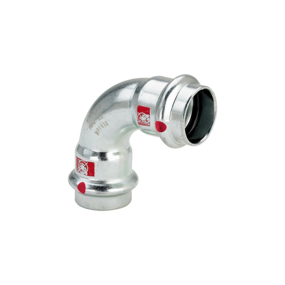 Łuk Prestabo 90' VIEGA 1116 jednoczęściowy, stal (ocynk galwaniczny/elektrolityczny) / stal (ocynk galwaniczny/elektrolityczny), 76.1 mm x 54 mm (mz x mz) z uszczelką