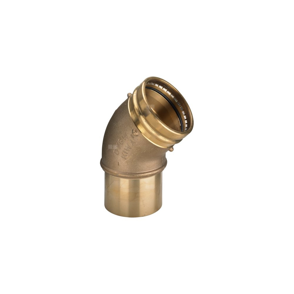 Sanpress XL-łuk 45°, z SC-Contur, brąz, końcówka wsuwana, przyłącze zaprasowywane. Wyposażenie: Element uszczelniający EPDM, pierścień nacinający, nr wzoru 2226.1XL, nr kat. 353 681, d: 76,1