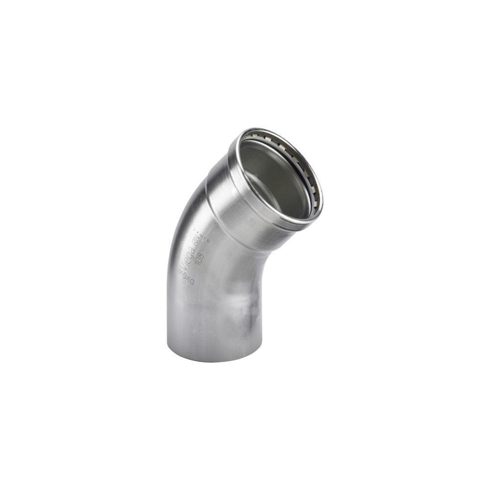 Łuk Sanpress 45' VIEGA 23261XL jednoczęściowy, stal nierdzewna / stal nierdzewna, 76,1 mm (kw x mz) z uszczelką