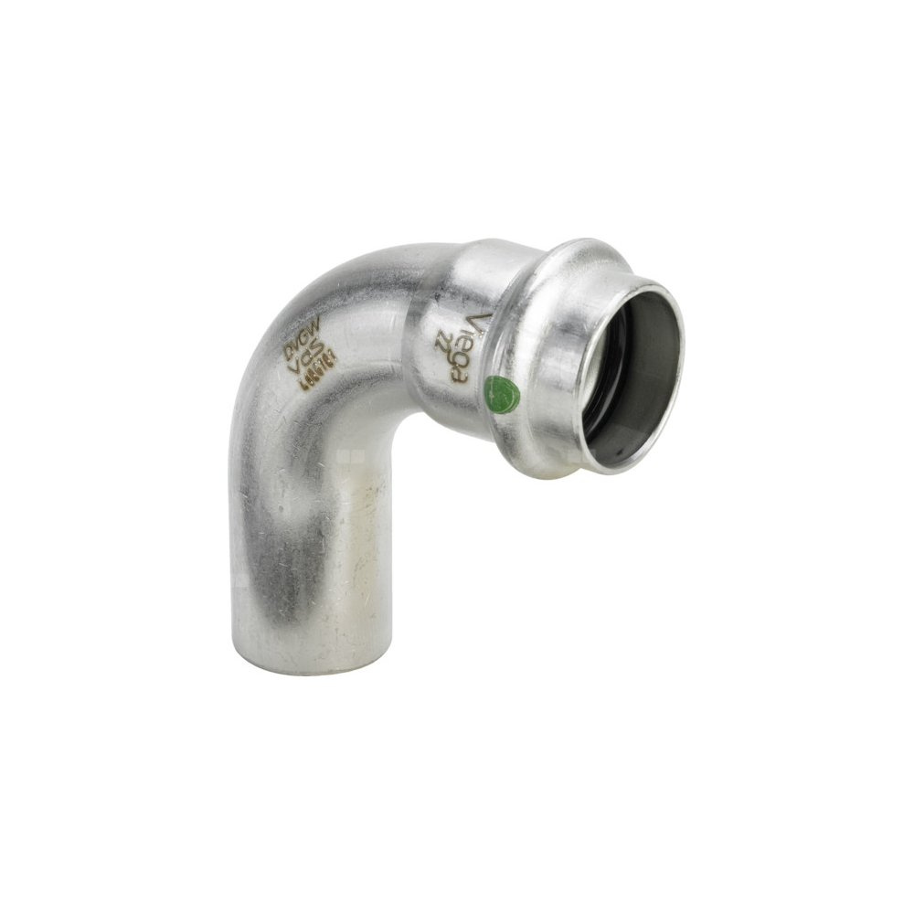 Łuk Sanpress 90' VIEGA 23161 jednoczęściowy, stal nierdzewna / stal nierdzewna, 35 mm (kw x mz) z uszczelką