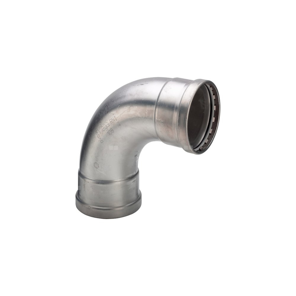 Łuk Sanpress 90' VIEGA 2316XL jednoczęściowy, stal nierdzewna / stal nierdzewna, 76,1 mm (mz x mz) z uszczelką