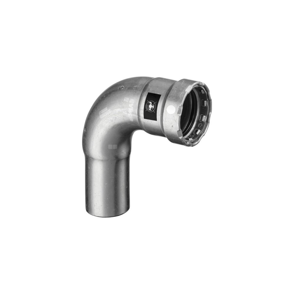 Megapress S-łuk 90 st. z SC-Contur stal niestopowa, powłoka cynkowo-niklowa, końcówka wsuwana, przyłącze zaprasowywane, nr wzoru 4316.1 centralne ogrzewanie zgodne z AGFW FW 524 DN: 15 D: ½