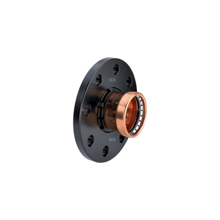Profipress XL-przejście kołnierzowe, z SC-Contur, miedź, przejście kołnierzowe, przyłącze zaprasowywane. Wyposażenie: Luźny kołnierz PN 10/16 ze stali, czarny malowany proszkowo, element uszczelniający EPDM, pierścień nacinający, pierścień oddzielający, nr wzoru 2459.5XL, nr kat. 577 797, DN: 65 d: 64,0 liczba otworów: 8 Ø otworu: 145 mm,