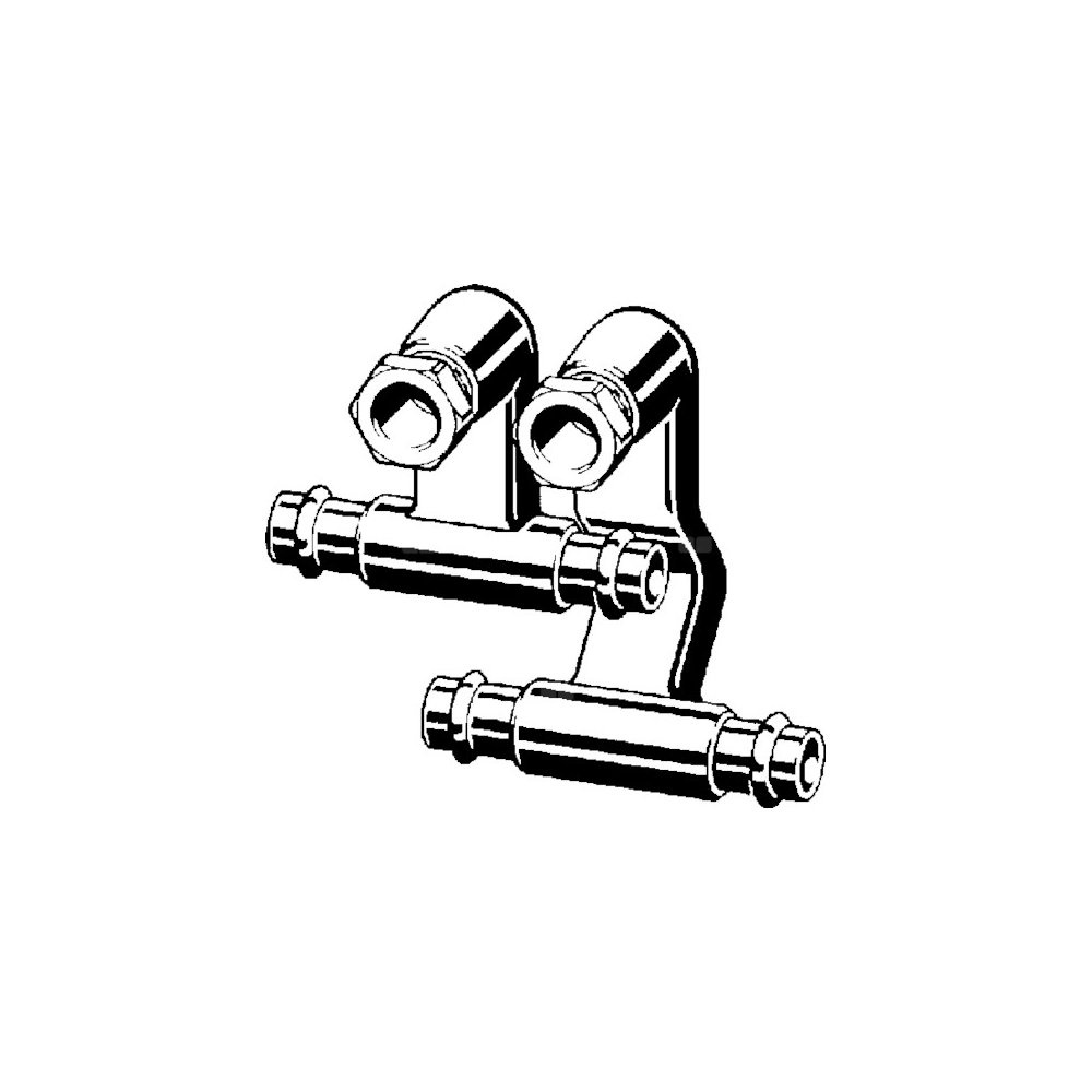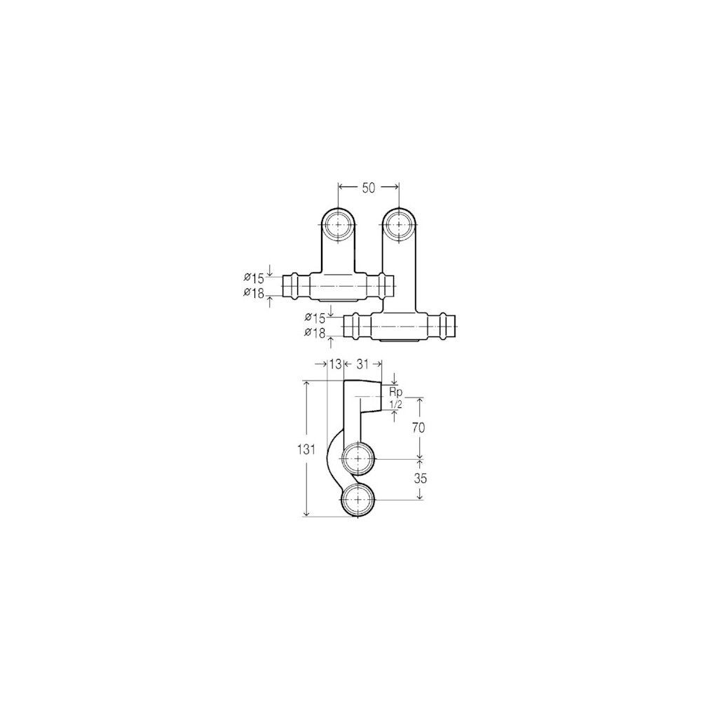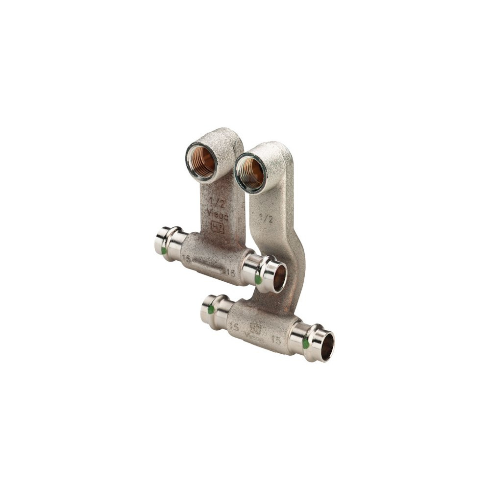 Sanpress-złączka przyłączeniowa do grzejnika, z SC-Contur. Przeznaczenie: przyłącze do grzejnika normalnego lub z zaworem, brąz, przyłącza zaprasowywane, gwint G. Wyposażenie: Dwuzłączki, elementy uszczelniające EPDM, nr wzoru 2273.1, nr kat. 446 635, d1: 18 G: ½ d2: 18
