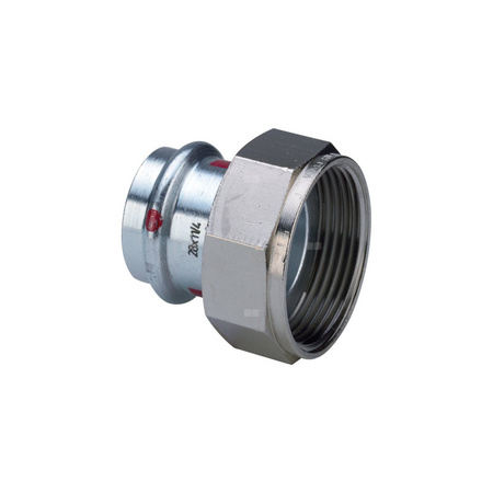 Prestabo-dwuzłączka przyłączeniowa, z SC-Contur, stal niestopowa, ocynkowana, przyłącze zaprasowywane, gwint G, uszczelnienie płaskie. Wyposażenie: Uszczelka płaska EPDM, element uszczelniający EPDM, wielokąt, nr wzoru 1163, nr kat. 601 102, dopuszczenie VdS, d: 28 G: 1½