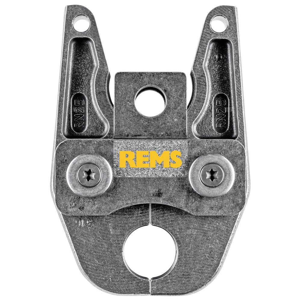 Cęgi zaciskowe.pierścienie zaciskowe o dużej obciążalności z kutej, ciągliwo-twardej i odpowiednio hartowanej stali specjalnej. Kontury zaciskowe cęgów/pierścieni REMS są specyficzne dla każdego systemu i odpowiadają konturom poszczególnych systemów zaciskowych. Zapewnia to bezproblemową zgodność i pewne zaciskanie. Szczęki cęgów/pierścieni zaciskowych posiadają precyzyjnie obrabiany kontur przy pomocy centrum obróbkowego CNC i maszynowo dokładnie zaokrąglony. Gwarantuje to małe tolerancje wykonawcze.