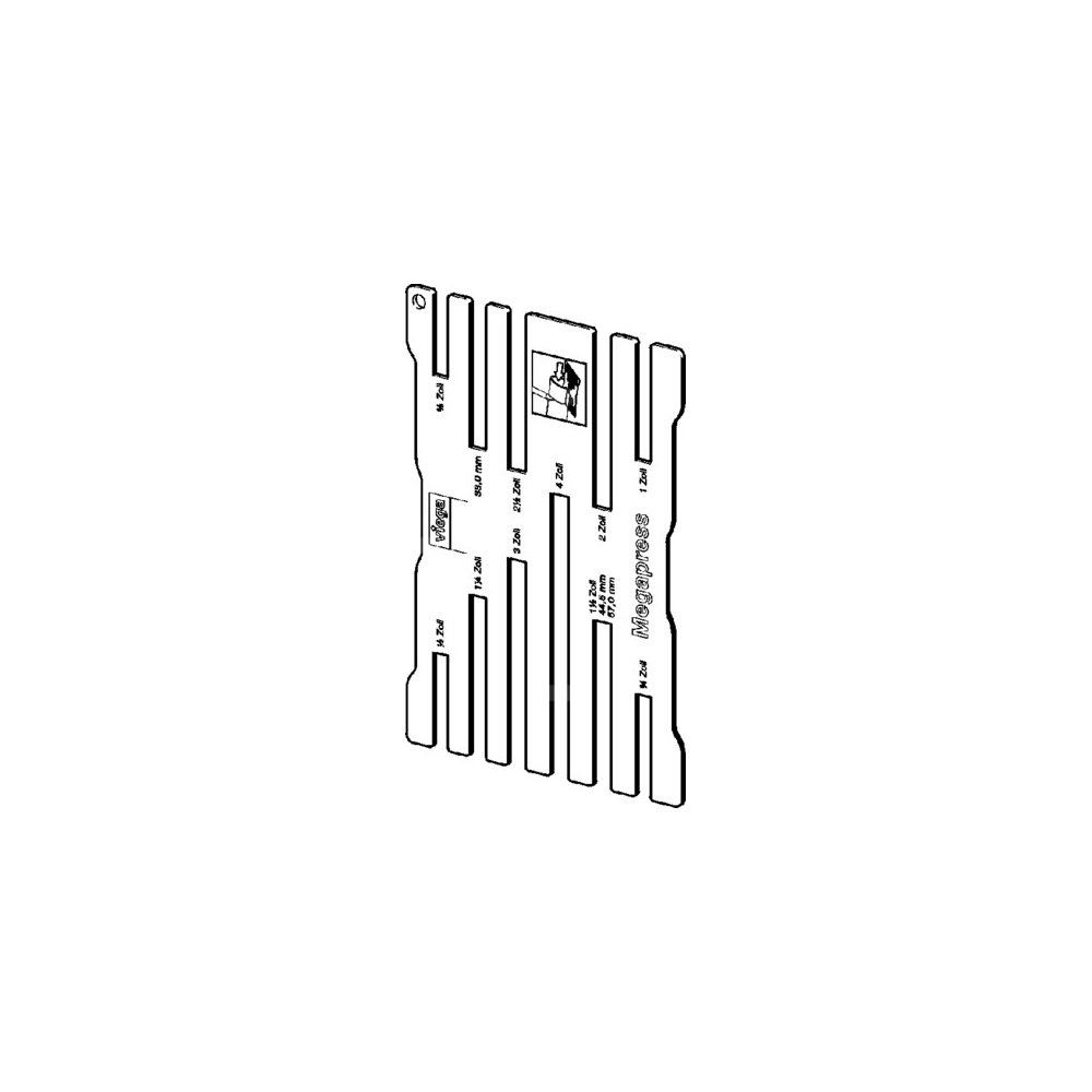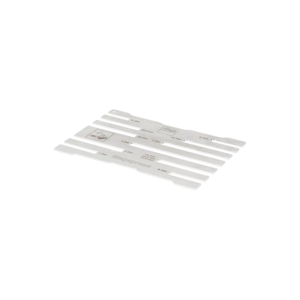 Megapress-szablon. Przeznaczenie: zaznaczanie głębokości wsunięcia rur stalowych wg PN-EN 10220/10255, nr wzoru 4294, nr kat. 799 298, dla D: ⅜–4 do Ø zewn.: 38/44,5/57