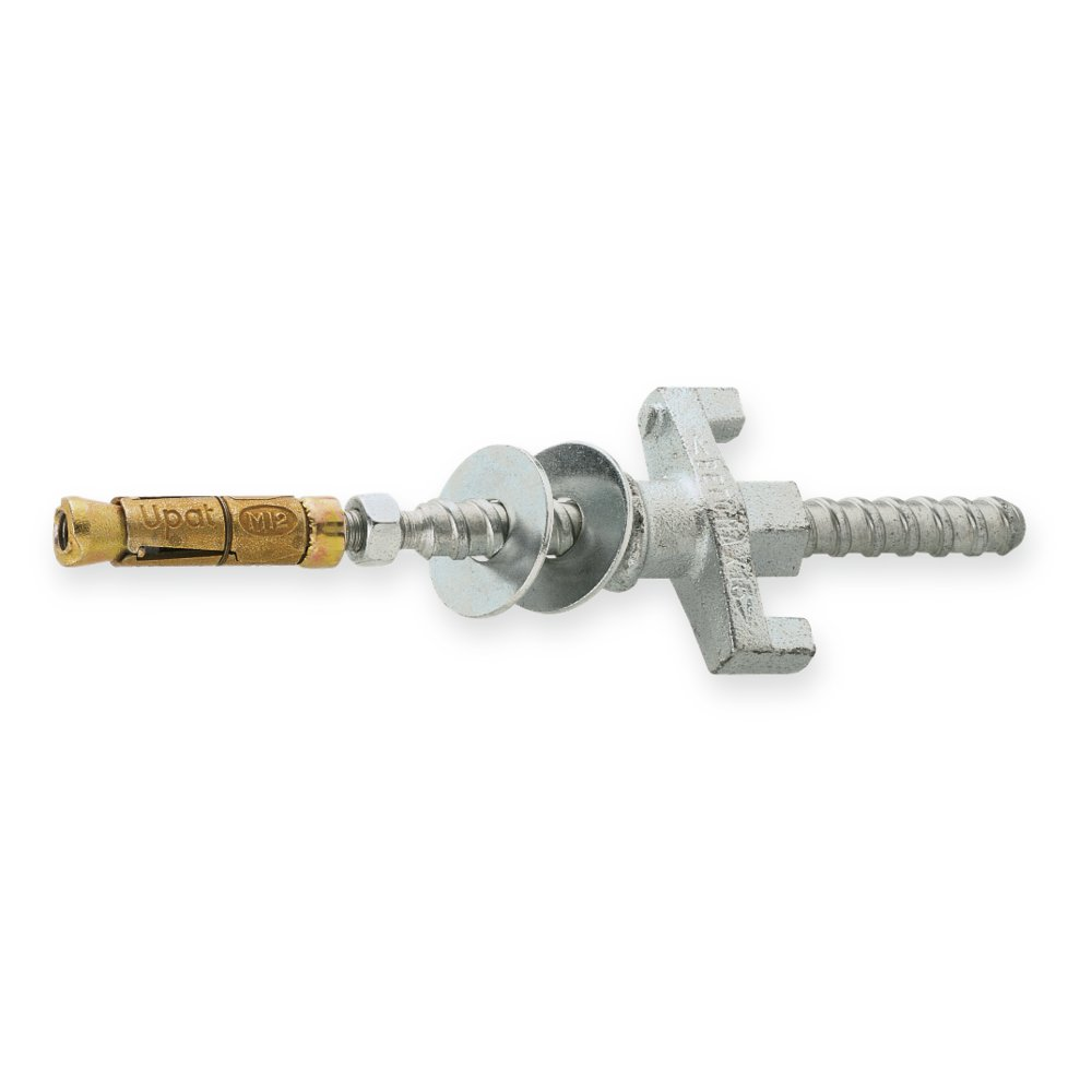 Zawiera (Nr FF35121): śrubę dwugwintowaną G-M 280 mm z gwintami M 12/85 mm (Nr FF35130), podkładkę (Nr FF70166), śrubę motylkową M 12 (Nr FF55150), nakrętka sześciokątna M12 (Nr FF70167), 5 x kotwa stalowa do muru M 12 (wielokrotnego użytku) (Nr FF35126) i wbijak (Nr FF35128).