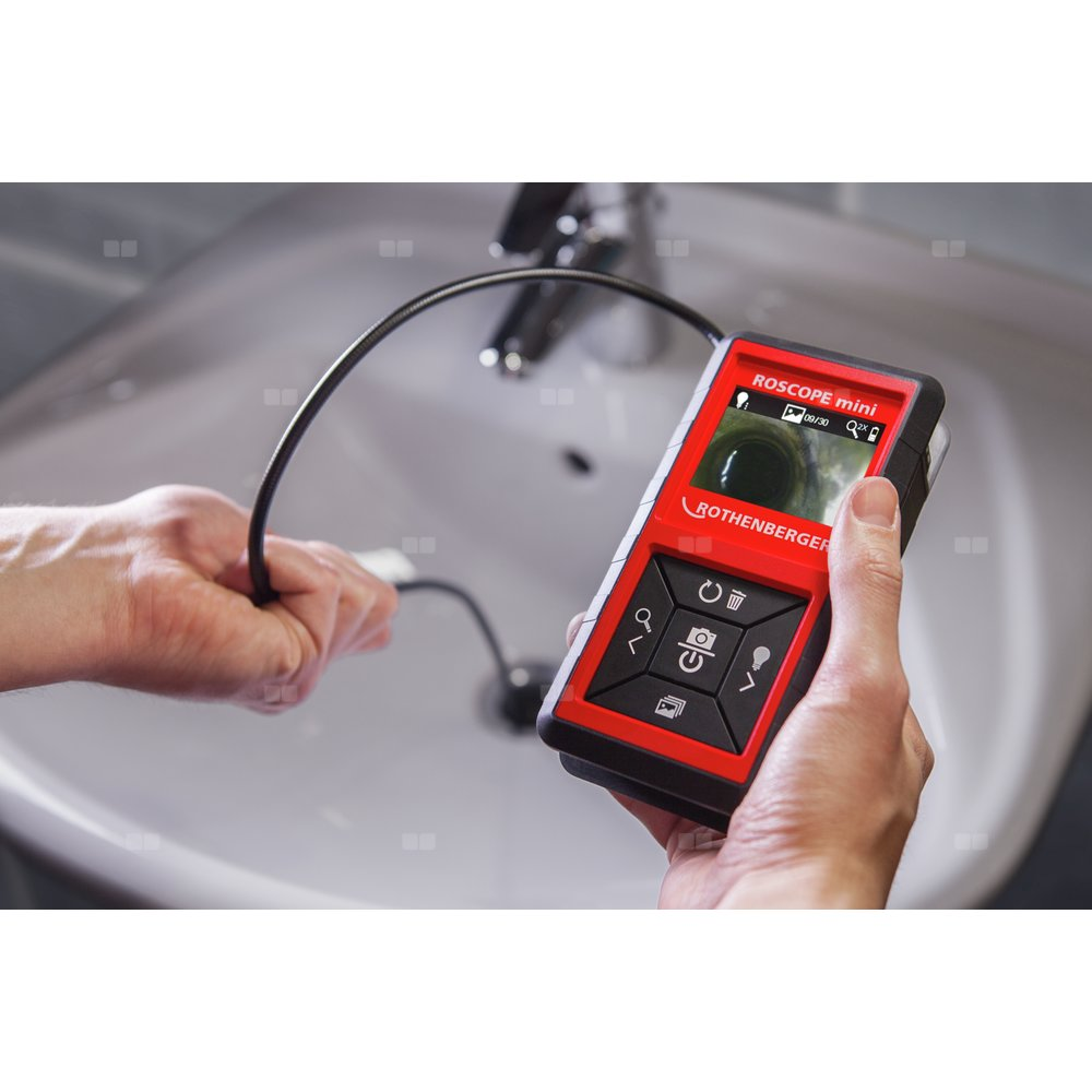 ROSCOPE mini jest stałym towarzyszem hydraulika - czy to na pasku, czy w skrzynce narzędziowej. Małe instalacje nie stanowią żadnego wyzwania, takiego jak szybka inspekcja syfonu, przyłącza prysznicowego lub inspekcja pustych przestrzeni pod kątem nowych instalacji. Połączenie najnowocześniejszej technologii, solidnej konstrukcji i kompaktowej konstrukcji sprawia, że ROSCOPE mini jest niezastąpiony w każdej torbie narzędziowej.