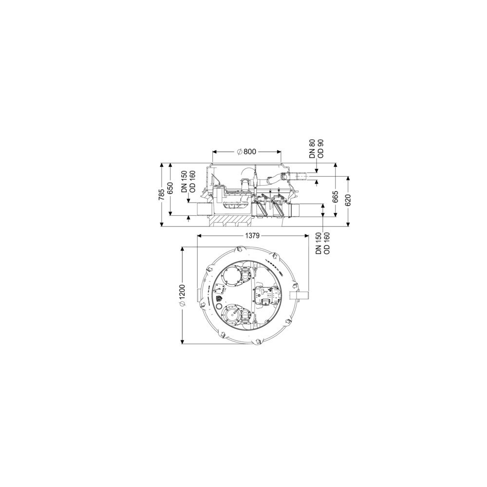 KESSEL Przepompownia przeciw. Ecolift XL, ścieków Ścieki zawierające fekalia i bez fekaliów, zabudowa w ziemi, Pojedyncza jednostka, z pompą zatapialną SPF 3000, czujnik alarmu z Sonda optyczna, sterownik Comfort Plus z redundancją, Wariant z najniższą zabudową