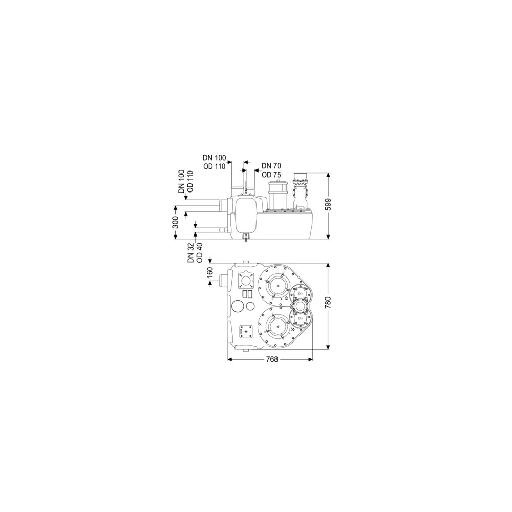 Przepompownia do ścieków zawierających fekalia i bez fekaliów jest wyposażona w dwie pompy zatapialne oraz zawór zwrotny. Pojemnik zbiorczy wykonany z wytrzymałego tworzywa sztucznego (PE) oferuje uniwersalne możliwości podłączenia i posiada przykręcany otwór wyczystkowy.