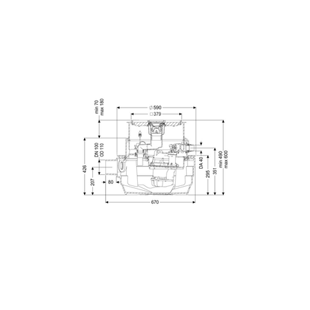 - Odstęp między środkiem rury dopływowej a dnem zbiornika: 207 mm