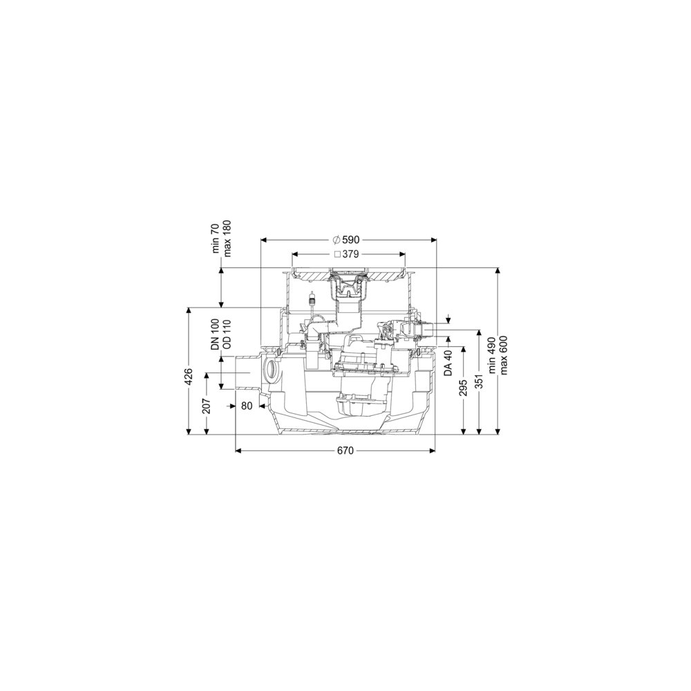 KESSEL Przepompownia Aqualift F Compact Duo, ścieki fekalne, typ pokrywy pokrywa do wklejenia płytek, zabudowa w płycie podłogowej, głębokość zabudowy 490 - 600 mm, urządzenie dwupompowe, z 2 SPZ 1000 resistant pomp zatapialnych, Odporna na media zawierające sole, ścieki z instalacji zmniejszających twardość wody oraz na kondensaty z urządzeń grzewczych