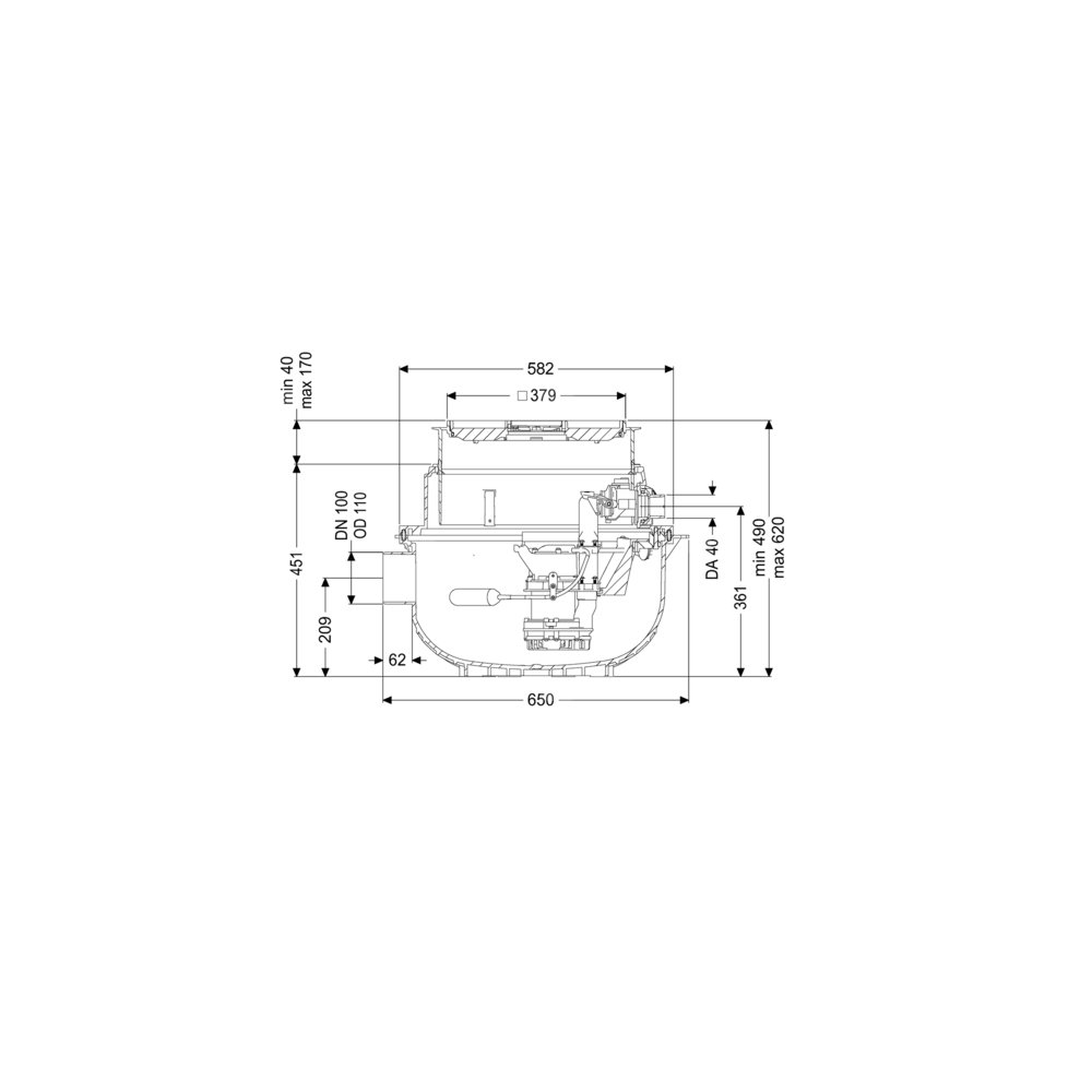 Gotowa do przyłączenia przepompownia do ścieków bez fekaliów jest wyposażony w jedną lub dwie pompy zatapialną oraz zawór zwrotny. Zbiornik wykonany z trwałego tworzywa sztucznego (PE) posiada otwartą komorę pompy. Zamknięcia jednoręczne umożliwiają łatwe wyjęcie zintegrowanych komponentów. Urządzenie do zabudowy w płycie podłogowej jest wstępnie zmontowane do montażu końcowego w miejscu instalacji.