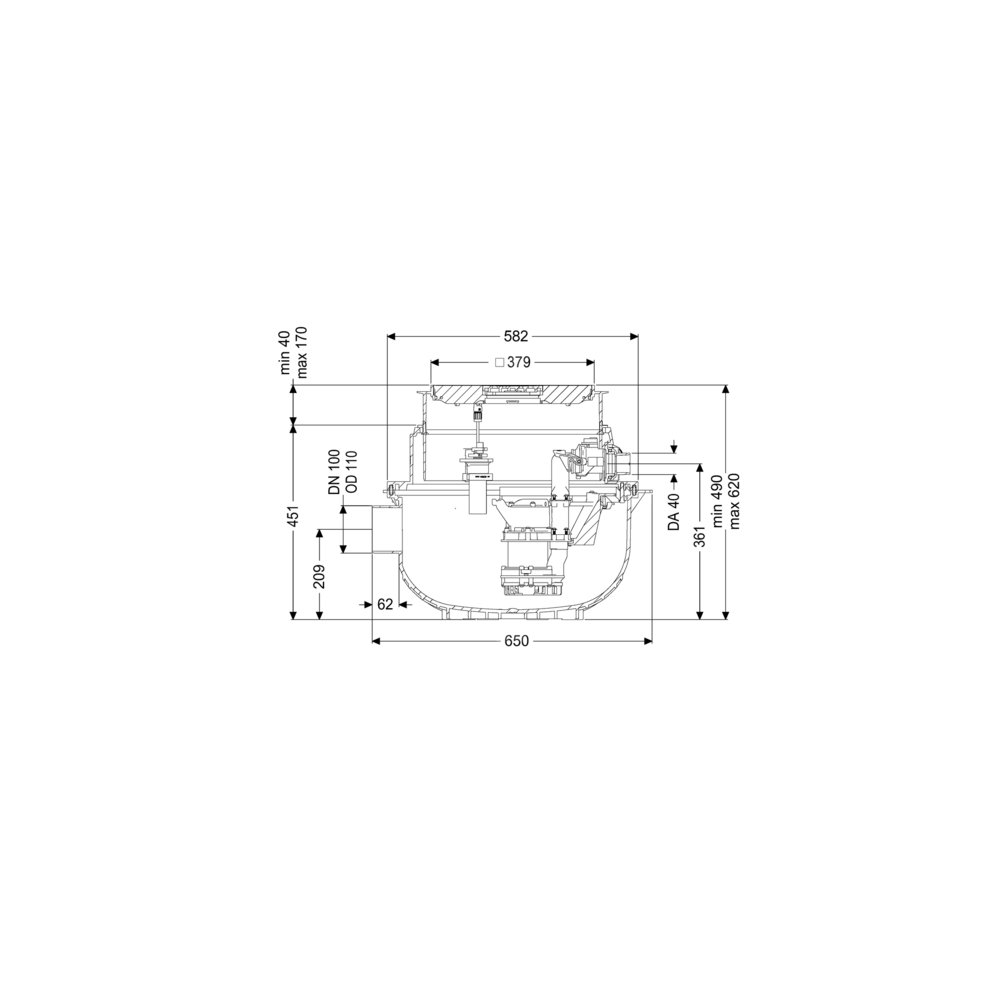 • Wielkość nominalna dopływu (DN): 100 mm