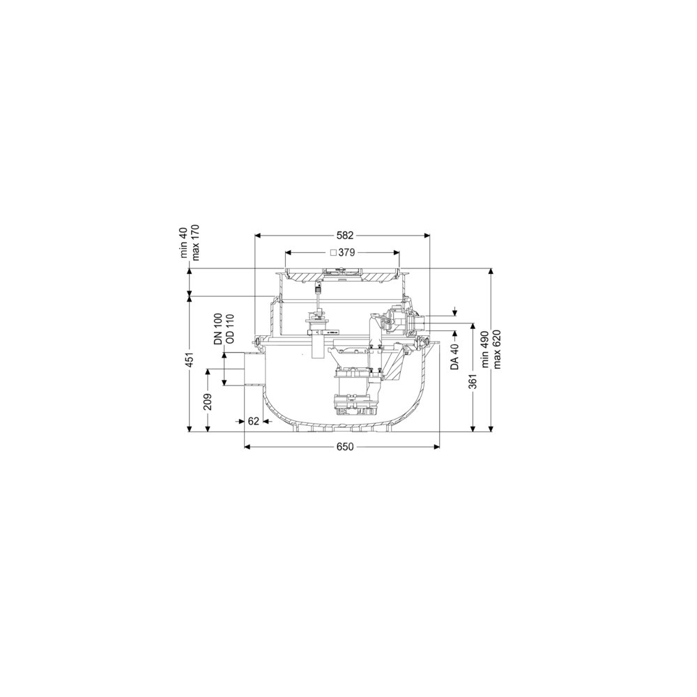 • Wielkość nominalna dopływu (DN): 100 mm
