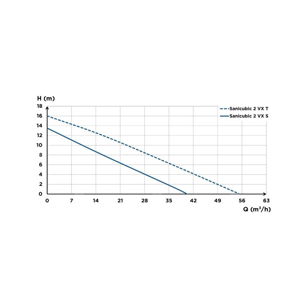 10 m ↑ / 100 m → Sanicubic 2 XL jest odporny na wysokie temperatury. Może być używany we wszystkich aplikacjach komercyjnych: w barach, pralniach, restauracjach jako pompa podnosząco-tlocząca ścieki z fekaliami. Wyposażony w dwa silniki o dużej mocy 2000 W każdy. Duży zbiornik (120l) i klasa ochrony IP68. Możliwa współpraca z systemem BMS. Stosowany przy dużym przepływie ścieków.