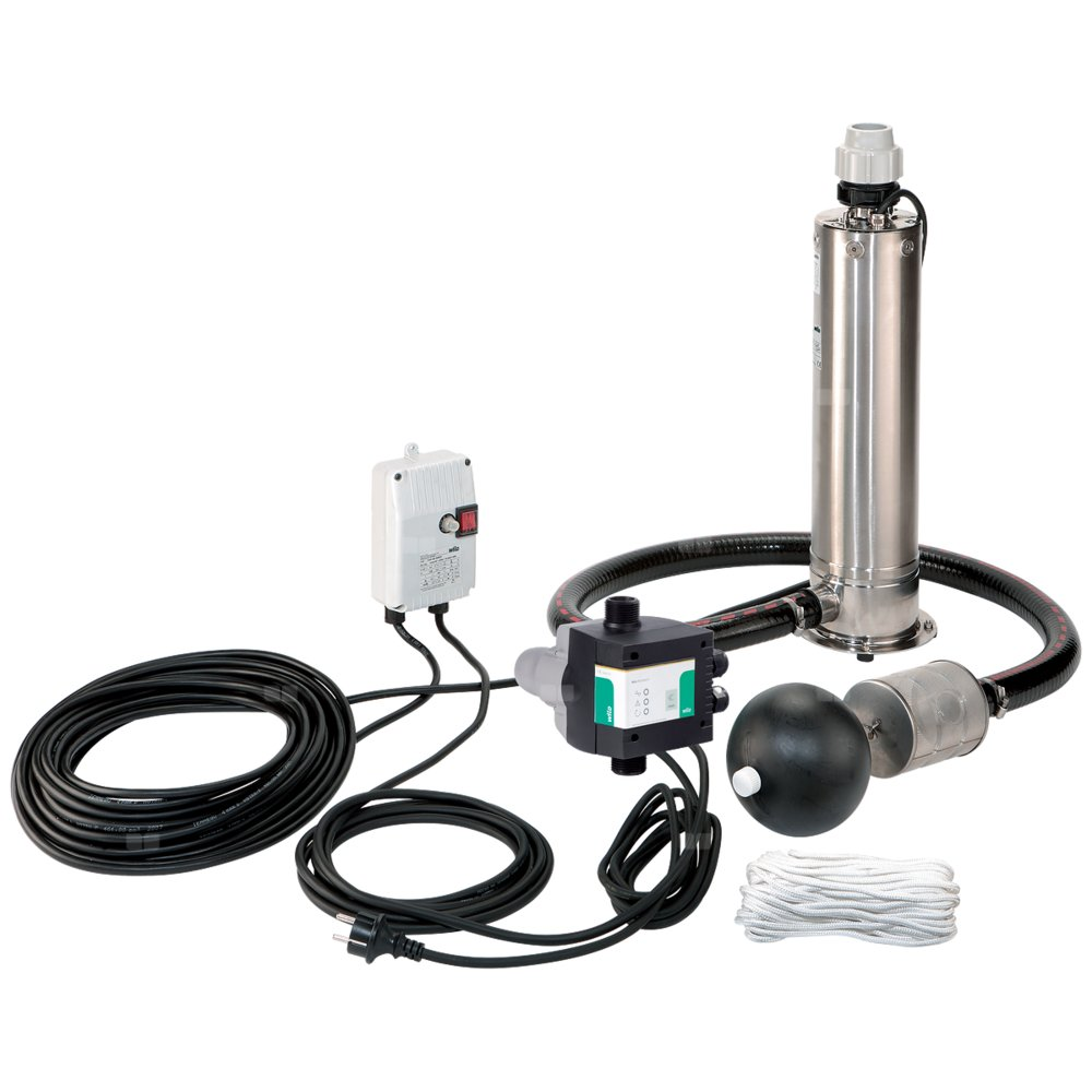 W komplecie z 20-metrowym kablem zasilającym, skrzynką łączeniową (IP55) z termicznym zabezpieczeniem silnika, włącznikiem/wyłącznikiem oraz 2-metrowym kablem zasilającym z wtyczką z uziemieniem.