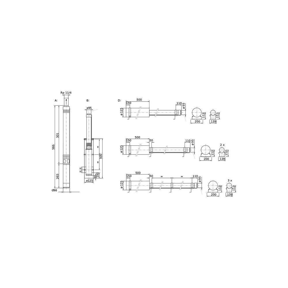 *Elementy montażowe: 2 złączki gwintowane z pierścieniem zaciskowym, kształtka redukcyjna z R 1¼� na R 1, 8 łączników kablowych